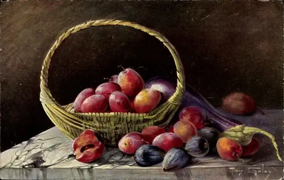 Künstler Ak Golay, Mary, Stillleben, Früchte in einem Korb, Obst