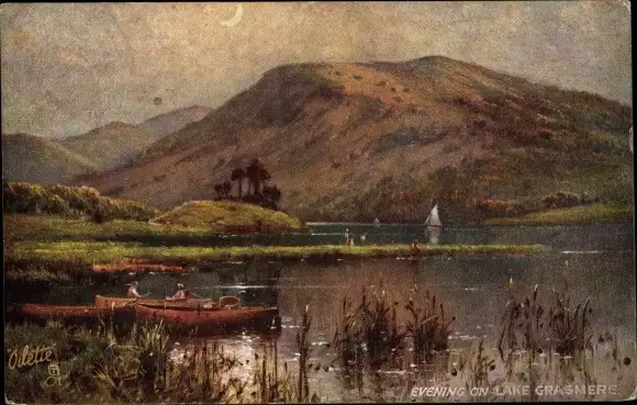 Künstler Ak Grasmere Lake District Cumbria England, Evening on Lake Grasmere