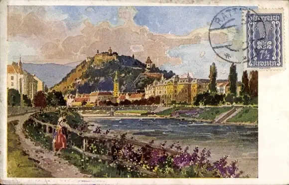 Ansichtskarte, Postkarte, Brücke, Brücken, Graz, Alt Graz