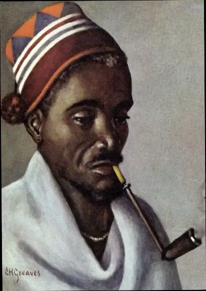 Künstler Ak Greaves, C., Afrikaner in Volkstracht, Porträt, Pfeife