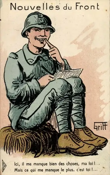 Künstler Ak Griff, Französischer Soldat schreibt einen Brief