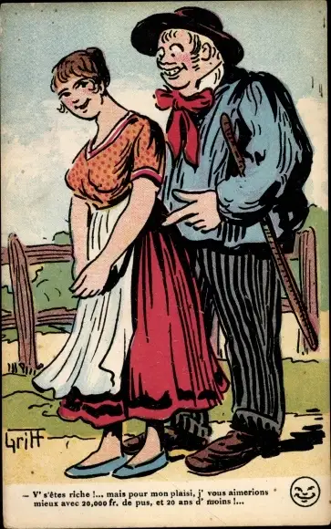 Künstler Ak Griff, Liebespaar in bretonischen Trachten