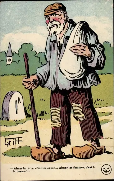 Künstler Ak Griff, Mann in französischer Tracht, Gehstock