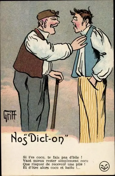 Künstler Ak Griff, Nos Dict-on, Zwei Männer, Gespräch, Si l'es cocu, te fais pas d'bile...