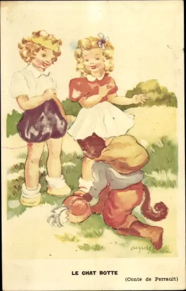 Künstler Ak Grimm-Märchen Der gestiefelte Kater, Lachende Mädchen