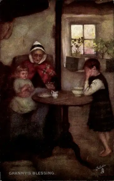 Künstler Ak Großmutters Segen, Oma mit Enkelkindern
