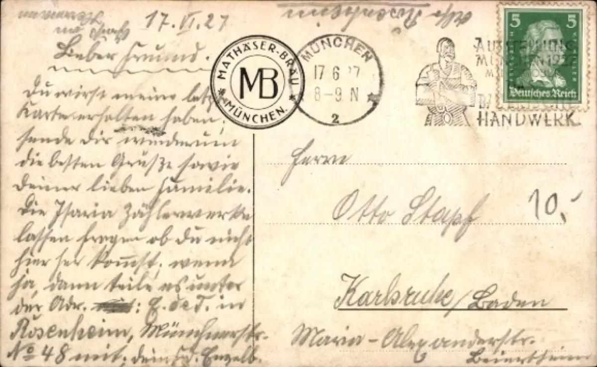 Zustand siehe Scan, 1927, gelaufen - ca 9 cm X 14 cm