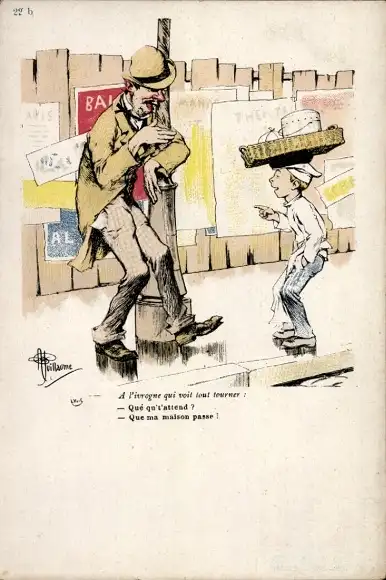 Künstler Ak Guillaume, Albert, Betrunkener an einer Laterne