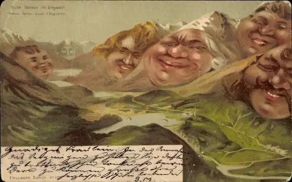 Künstler Ak Gute Saison im Engadin, Berggesichter, F. Killinger