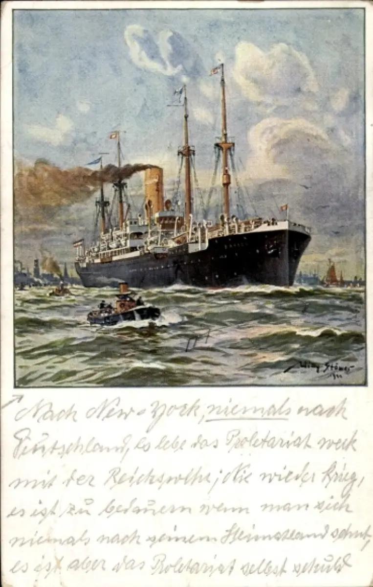 Ansichtskarte, Postkarte, Hafen, Schiffe, Boote, Dampfer, Boot