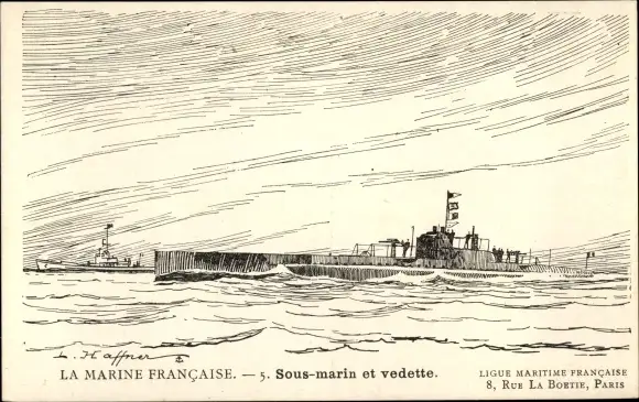Künstler Ak Haffner, Die französische Marine, U-Boot und Schnellboot