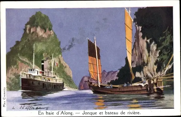 Künstler Ak Haffner, Halong Bay Vietnam, Dschunke und Flussboot