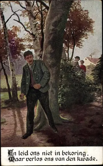 Künstler Ak Hagen, Fritz, Und führe uns nicht in Versuchung, Mann mit Messer
