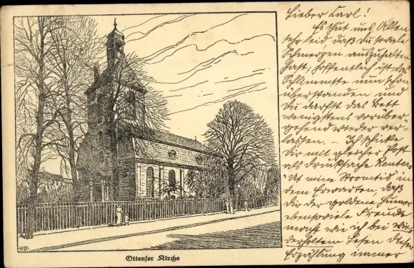 Künstler Ak Hamburg Altona Ottensen, Ottenser Kirche