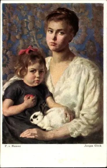 Künstler Ak Hamme, P. v., Junges Glück, Frau mit Kind, Kaninchen