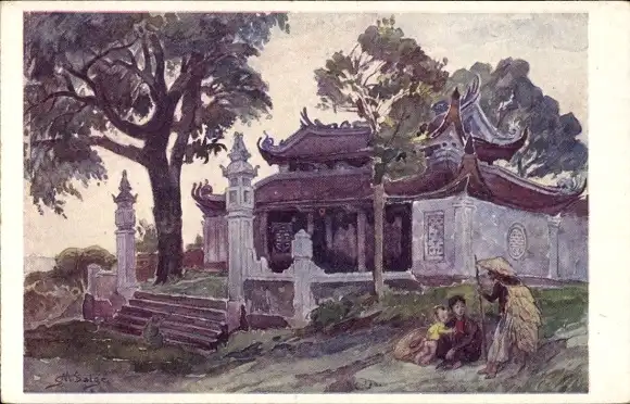 Künstler Ak Hanoi Tonkin Vietnam, Pagode in Phu Lang Thuong, Binh Phú Lang Thuong