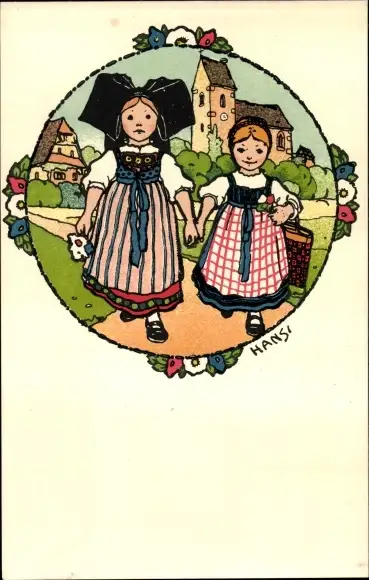 Künstler Ak Hansi, Elsässer Mädchen in Trachten