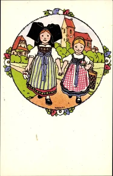 Künstler Ak Hansi, Elsässer Mädchen in Trachten