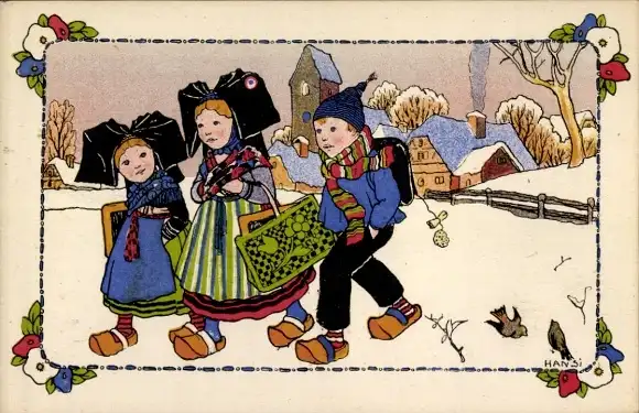 Künstler Ak Hansi, Jean Jacques Waltz, Elsässer Kinder in Tracht