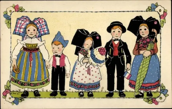 Künstler Ak Hansi, Jean Jacques Waltz, Kinder in Elsässer Tracht