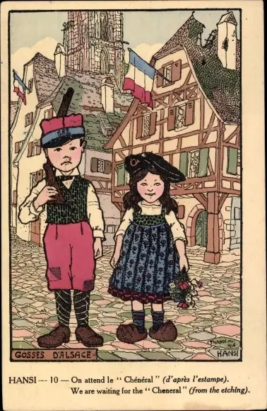 Künstler Ak Hansi, Jean Jacques Waltz, On attend le Cheneral, Elsässer Kinder