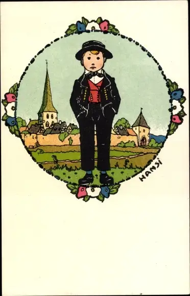 Künstler Ak Hansi, Junge in Elsässer Volkstracht