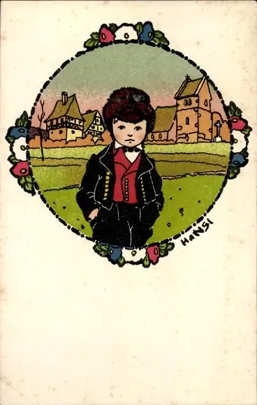 Künstler Ak Hansi, Junge in Elsässer Volkstracht