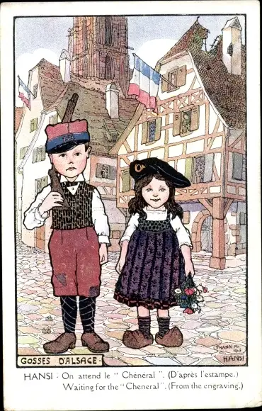 Künstler Ak Hansi, Kinder in Elsässer Tracht