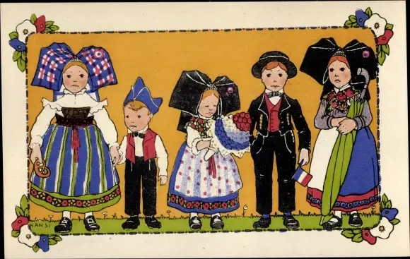 Künstler Ak Hansi, Kinder in Elsässer und Lothringer Volkstrachten