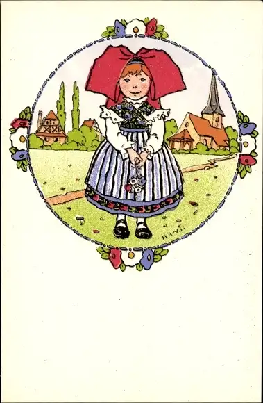 Künstler Ak Hansi, Mädchen in Elsässer Tracht
