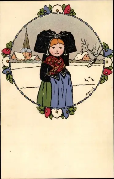 Künstler Ak Hansi, Mädchen in Elsässer Volkstracht