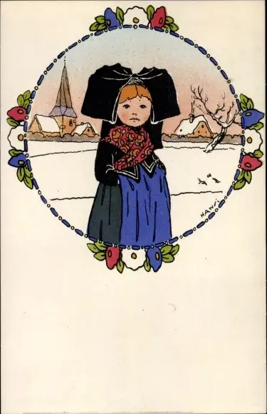 Künstler Ak Hansi, Mädchen in Elsässer Volkstracht