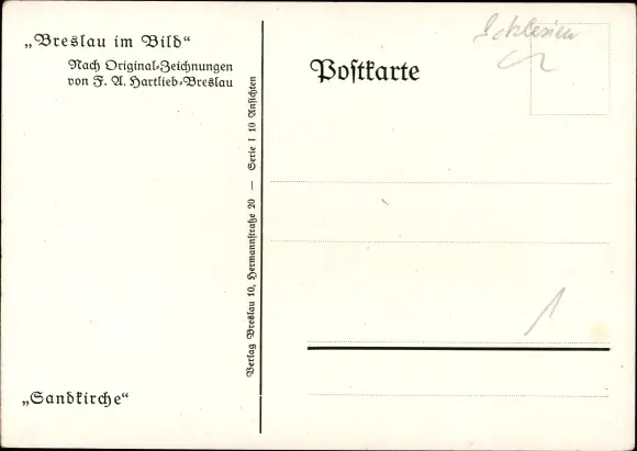 Künstler Ak Hartlieb, Wrocław Breslau Schlesien, Sandkirche