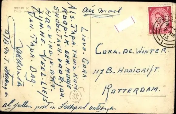 Zustand, siehe Scan, gelaufen, 1953 - ca 9 cm X 14 cm