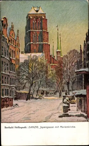 Künstler Ak Hellingrath, B., Gdańsk Danzig, Jopengasse mit Marienkirche, Winteransicht