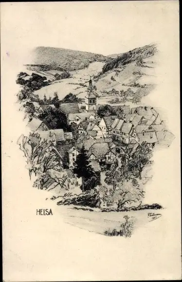 Künstler Ak Helsa in Hessen, Gesamtansicht