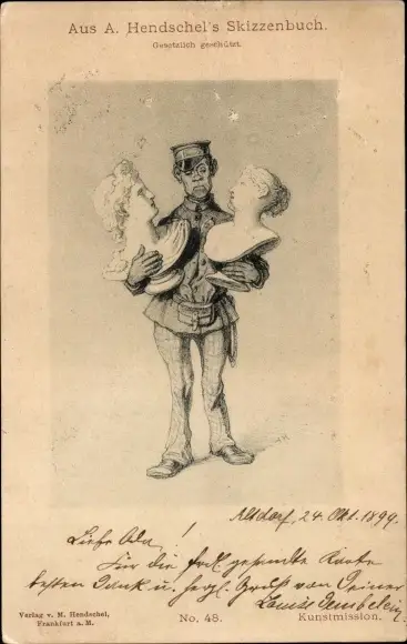 Künstler Ak Hendschel, Albert, Kunstmissin, Bote mit Büsten