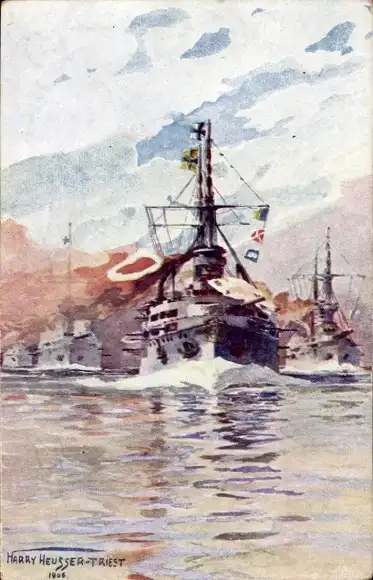 Künstler Ak Heusser, Harry, Deutsche Kriegsschiffe, Linienschiff-Geschwader, Wittelsbach-Klasse