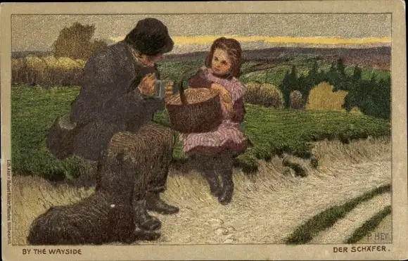 Künstler Ak Hey, P., Der Schäfer, Hund, Mädchen