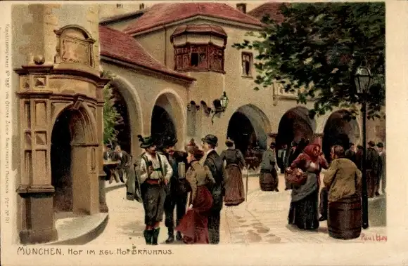 Künstler Ak Hey, Paul, München, Hof im Kgl. Hofbräuhaus, Gäste