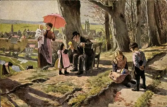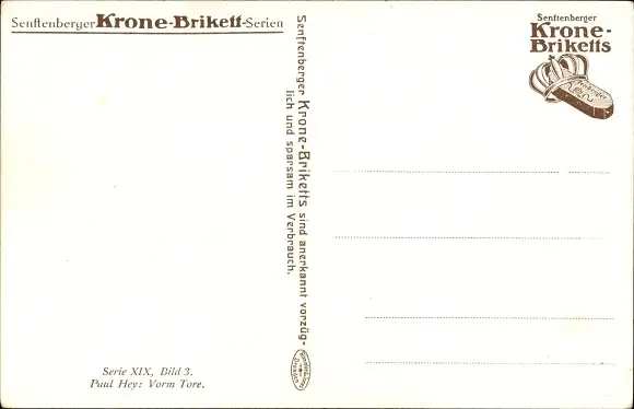 Künstler Ak Hey, Paul, Vorm Tore, Senftenberger Krone Briketts, Reklame