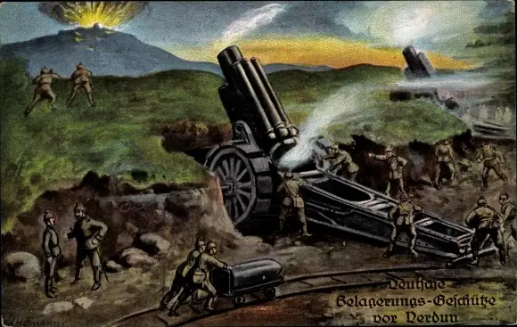 Künstler Ak Hoffmann, Ad., Deutsche Belagerungsgeschütze vor Verdun, I. WK