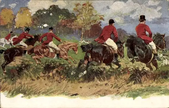 Künstler Ak Hoffmann, Ad., Jagdgesellschaft, Reiter