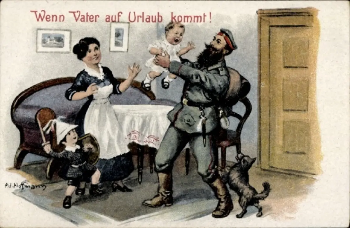 Künstler Ak Hoffmann, Ad., Wenn Vater auf Urlaub kommt, Soldat zu Hause, Familie