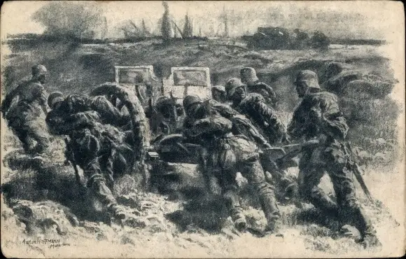 Künstler Ak Hoffmann, Anton, Artilleriegeschütz geht in Stellung, I WK