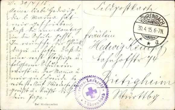 Zustand, siehe Scan, gelaufen, 1915 - ca 14 cm X 9 cm