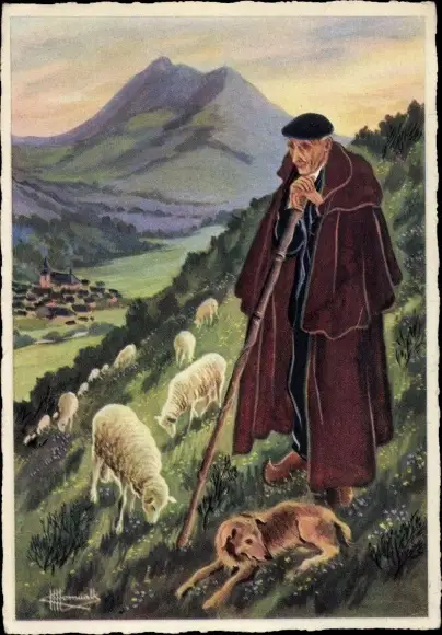 Künstler Ak Homualk, Schäfer mit Schafherde