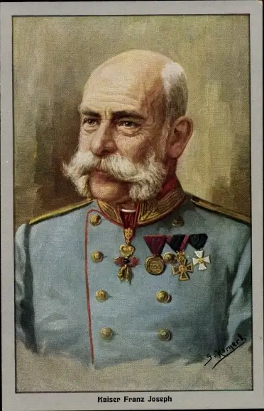 Künstler Ak Hornert, G., Kaiser Franz Joseph I., Portrait in Uniform, Orden