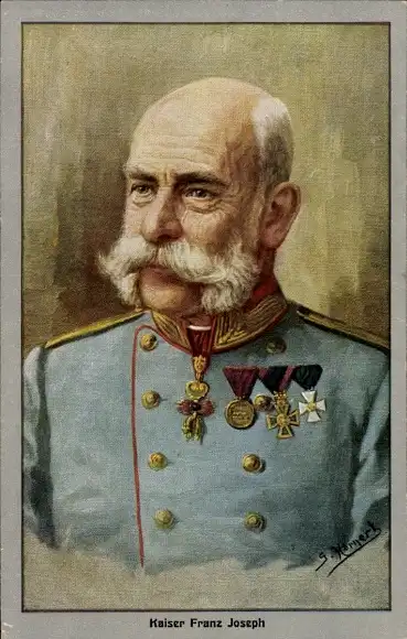Künstler Ak Hornert, G., Kaiser Franz Joseph I., Portrait in Uniform, Orden