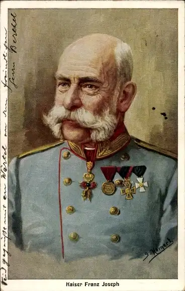 Künstler Ak Hornert, G., Kaiser Franz Joseph I., Portrait in Uniform, Orden